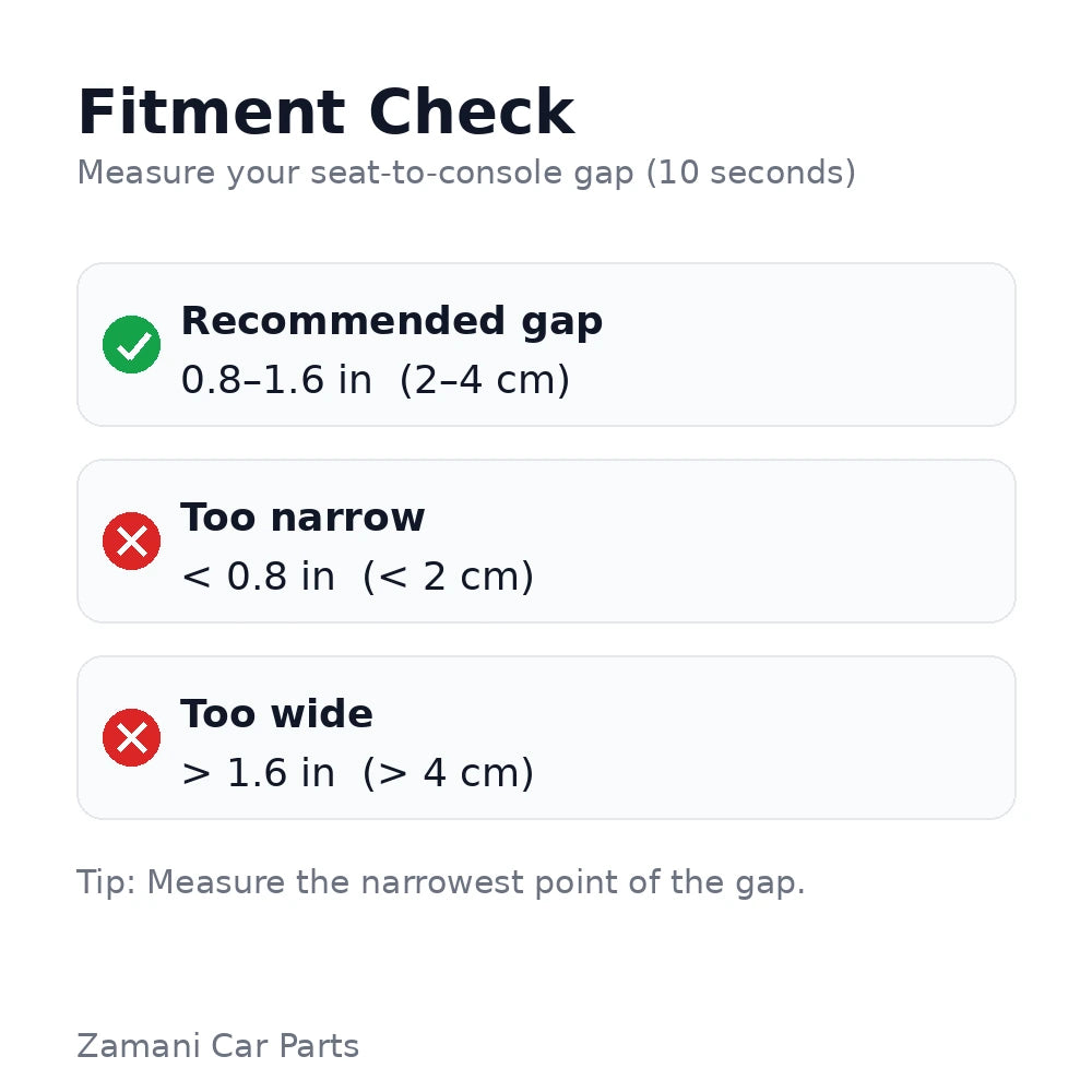 Best for gaps of 2–4 cm. Works best when the seat edge is level with or higher than the console.